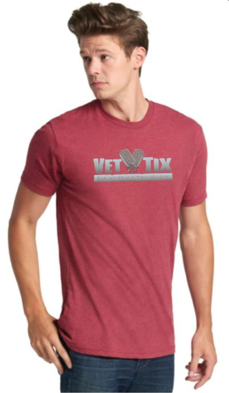 Short Sleeve, Vet Tix logo on front. 60% Combed Ring-Spun Cotton 40% Polyester