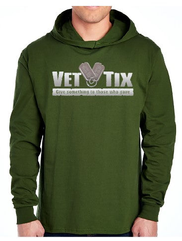 Vet Tix - Military Green - Long Sleeve Hooded T-shirt - No Branch